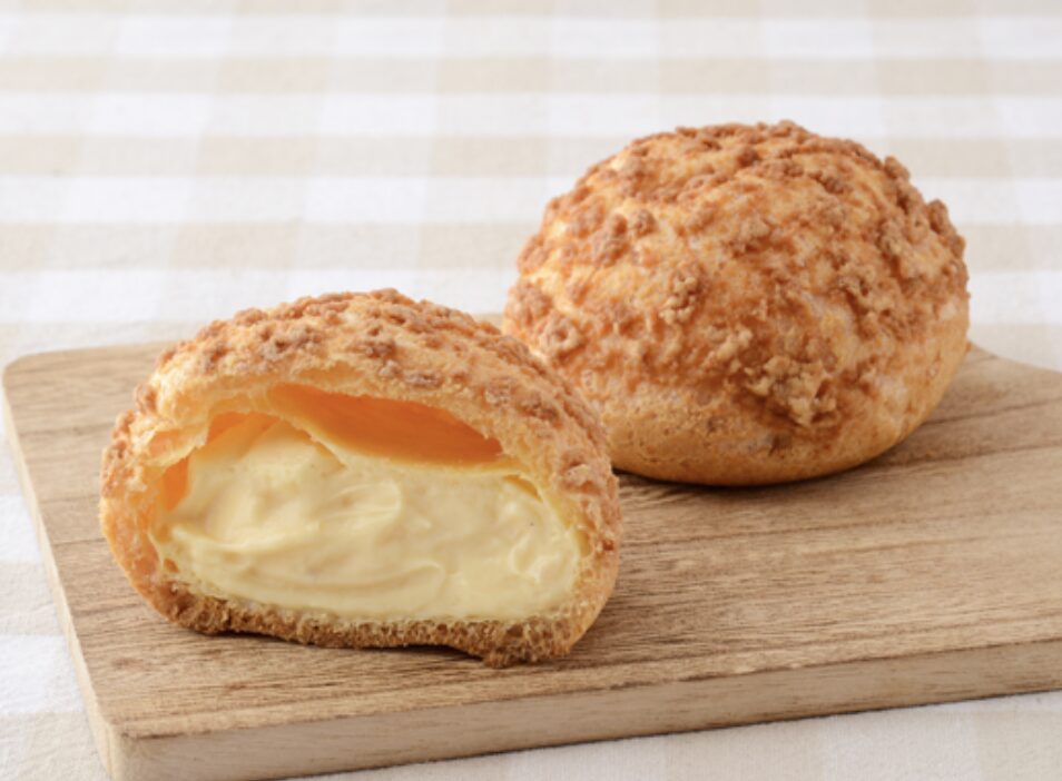 - 通常のシュー生地の上にクッキー生地を重ねて焼き上げており、非常に厚みがあって香ばしく、力強いザクザク食感が楽しめます。
