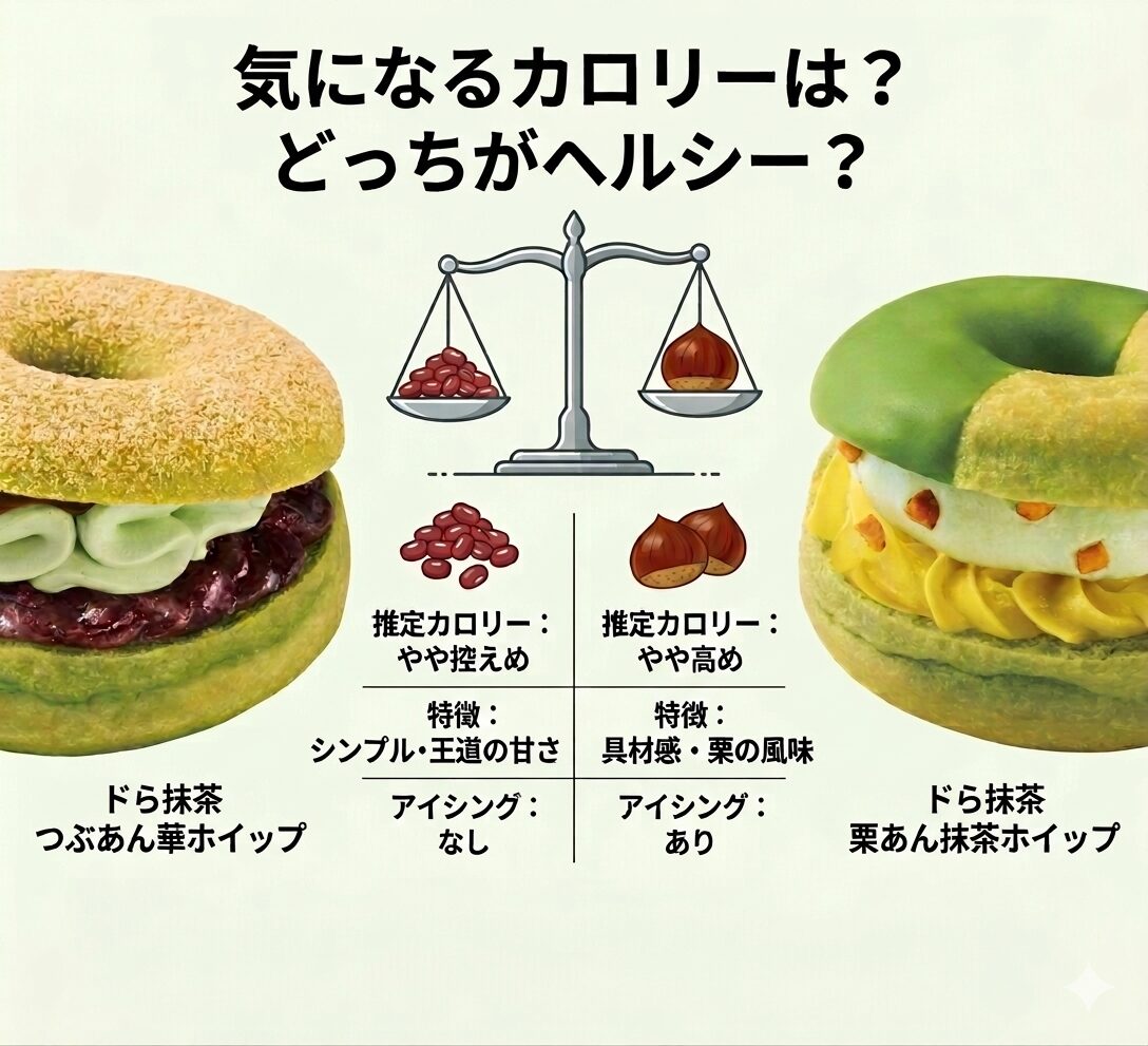 どちらを食べる?ミスド新作「ドら抹茶」2種を食べ比べ!つぶあんVS栗あん、おすすめは?