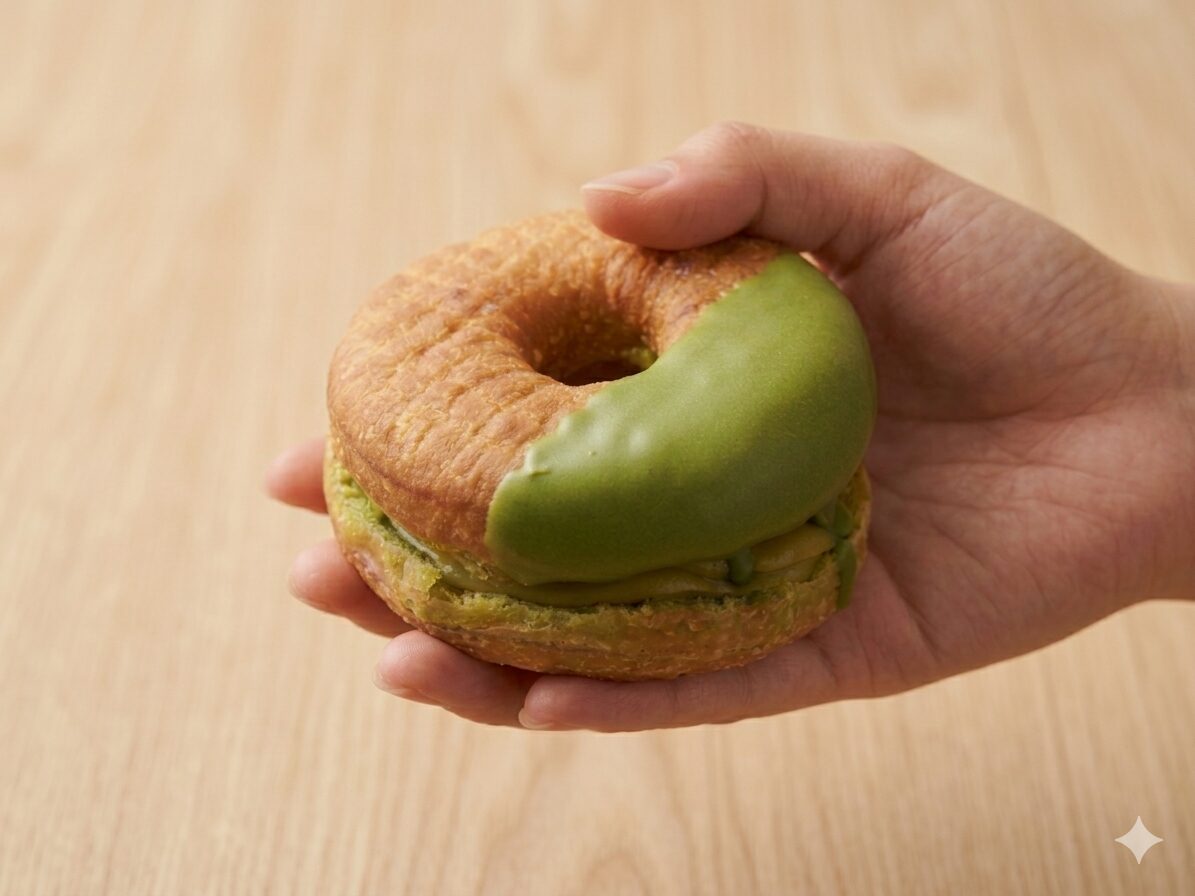• 手持ちショット: ドーナツを手に持って、お店のロゴや看板を背景に少しぼかして入れると、SNSで「今食べてる!」というライブ感が伝わりやすくなる。